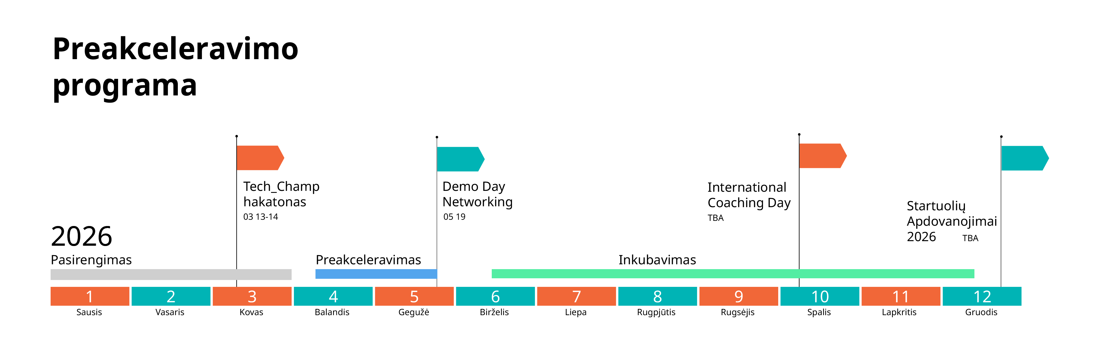MedTech ir DigITech startuolių preakceleravimo programos – tai intensyvus, praktinis mokymų ciklas, kuriame tavo komanda ne tik validuos inovatyvias idėjas, bet ir įgis verslumo įgūdžių bei realios startuolio vystymo patirties.